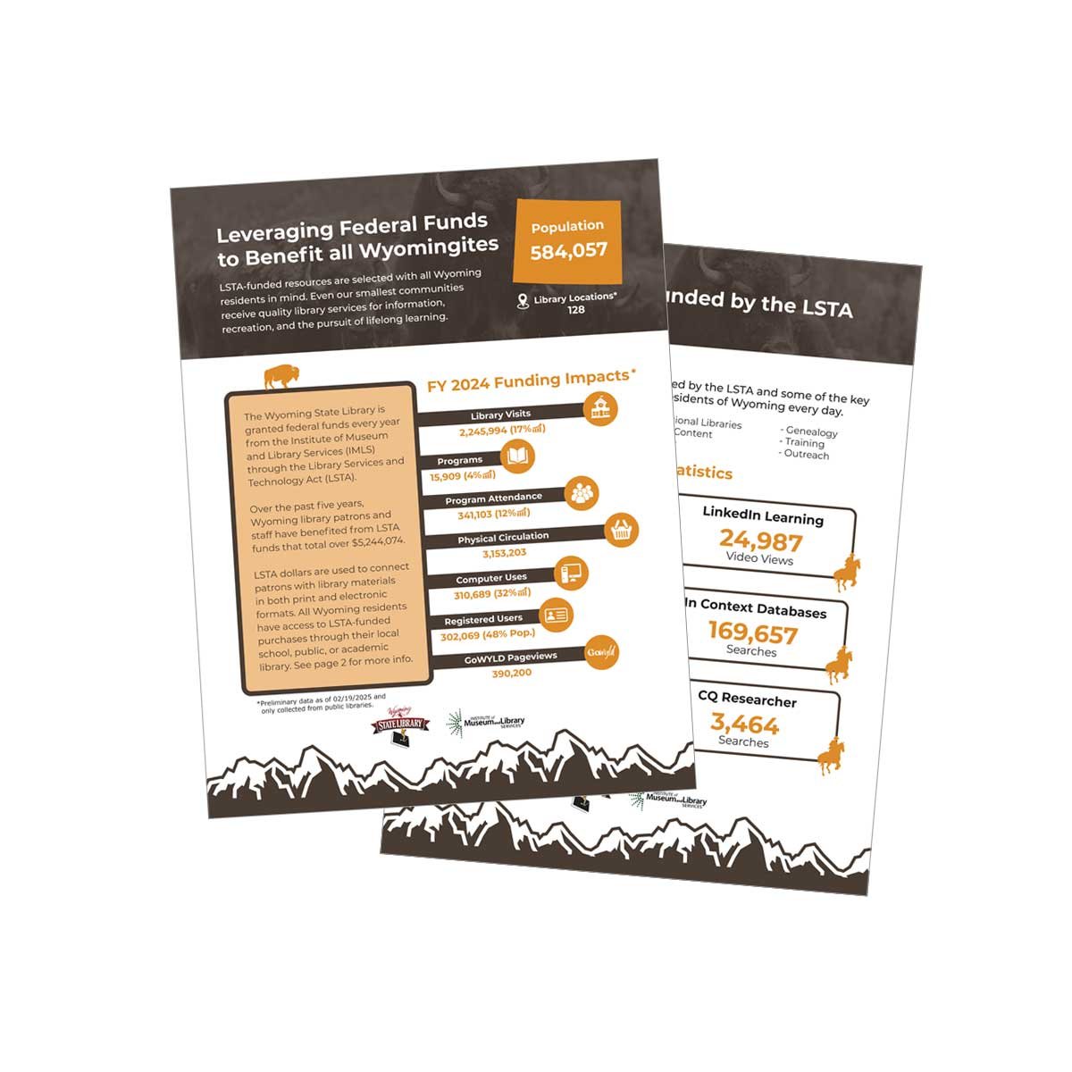 - Designs and produces marketing and promotional materials for state library staff and Wyoming libraries to effectively promote library services and programs